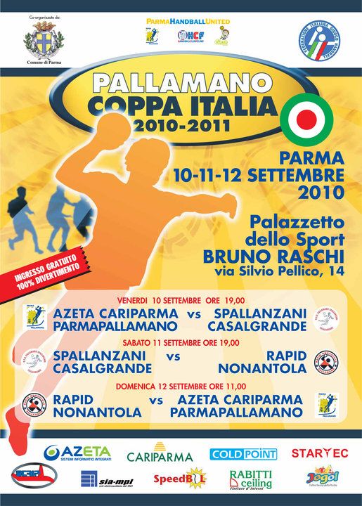 Si prosegue poi con la fase preliminare della Coppa Italia che si svolgerà proprio a Parma, al Pala Raschi, e che vedrà Parma affrontare lo Spallanzani Casalgrande (venerdì 10 alle ore 19:00) e il Rapid Nonantola (domenica 12 alle ore 11:00); la terza partita che vede la sfida tra Casalgrande e Nonantola si svolgerà sabato 11 alle ore 19:00.